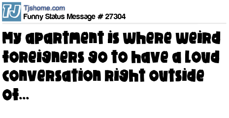 X  My apartment is where weird foreigners go to have a loud conversation right outside of...