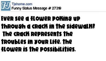 X says Ever see a flower poking up through a crack in the sidewalk? The crack represents the troubles in your life, the flower is the possibilities.
