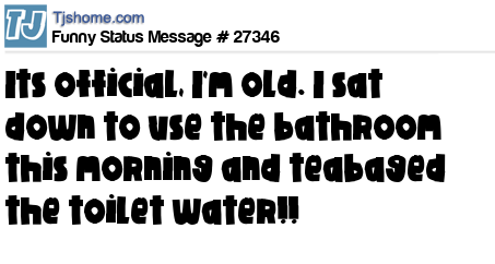 X says its official, I'm old. I sat down to use the bathroom this morning and teabaged the toilet water!!