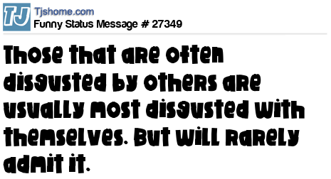 X is Those that are often disgusted by others are usually most disgusted with themselves. But will rarely admit it.