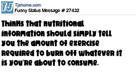 - # 18878 The nutritional facts on a box should just tell you the amount of exercise needed to burn off what you're about to eat.