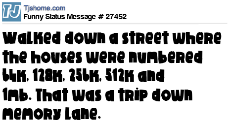 X walked down a street where the houses were numbered 64k, 128k, 256k, 512k and 1mb. That was a trip down memory lane.