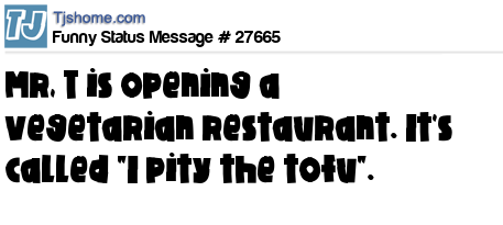 X Mr, T is opening a vegetarian restaurant. It's called "I pity the tofu".