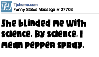 - # 86250 She blinded me with science. Fine, it was mace, but she sprayed it very scientifically.