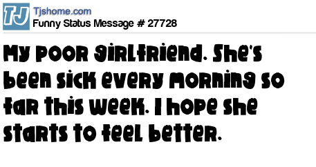 X My poor girlfriend. She's been sick every morning so far this week. I hope she starts to feel better.