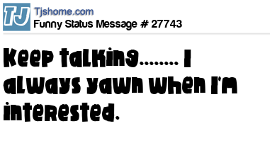 - # 148214 People assume when I yawn that I’ve lost interest in what they have to say but truth be told, I was never interested.