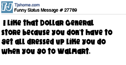 X I like that Dollar General store because you don't have to get all dressed up like you do when you go to Walmart.