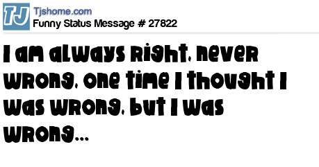 X says i am always right, never wrong, one time I thought I was wrong, but I was wrong...