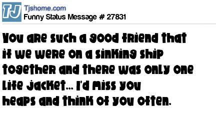 - # 42630 You are such a good friend that if we were on a sinking ship together and there was only one life jacket... I'd miss you alot and think of you often.
