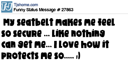 X is My seatbelt makes me feel so secure ... Like nothing can get me... I love how it protects me so..... ;)