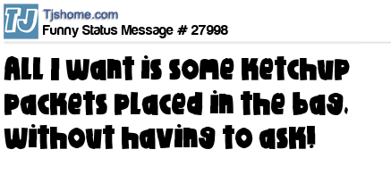 - # 160913 Some days, all I want is some ketchup packets placed in the bag, without having to ask. That is all.
