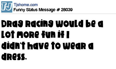 X says Drag racing would be a lot more fun if I didn't have to wear a dress.