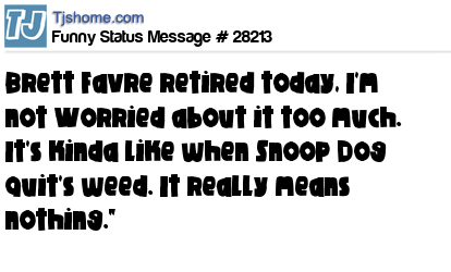 X is Brett Favre retired today, I'm not Worried about it too much. It's kinda like when Snoop Dog quit's weed. It really means nothing."