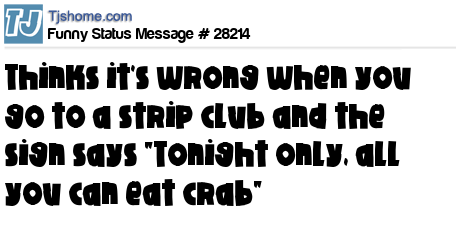 X  thinks it's wrong when you go to a strip club and the sign says "Tonight only, all you can eat crab"