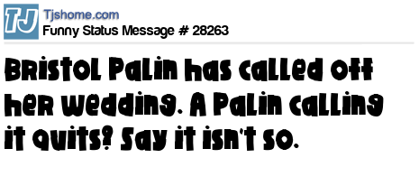 X says Bristol Palin has called off her wedding. A Palin calling it quits? Say it isn't so.
