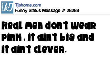 X says real men don`t wear pink , it ain`t big and it ain`t clever.