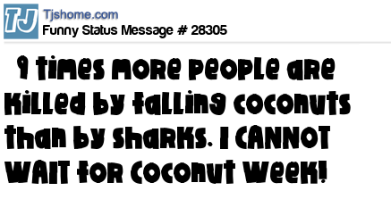 - # 66065 9 times more people are killed by falling coconuts than by sharks. I CANNOT WAIT for Coconut Week!