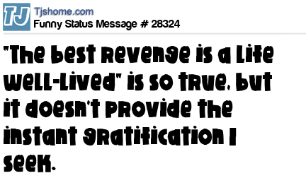 - # 38092 "The best revenge is a life well-lived" is so true, but it doesn't provide the instant gratification I seek.