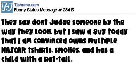 X They say dont judge someone by the way they look, but I saw a guy today that I am convinced owns multiple NASCAR tshirts, smokes, and has a child with a rat-tail.