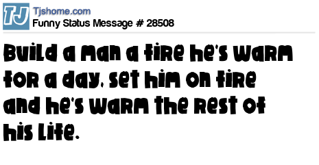 - # 182607 Build a man a fire, and he'll be warm for a day. Set a man on fire, and he'll be warm for the rest of his life.
