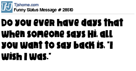 X is Do you ever have days that when someone says Hi, all you want to say back is, "I wish I was."