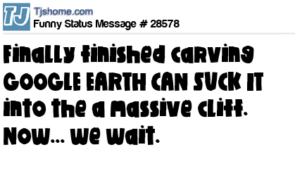 - # 68985 If I ever Google "things to eat in my fridge" and list is correct thats when I'll really be impressed with Google Earth.