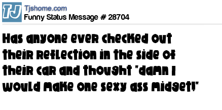 X is has anyone ever checked out their reflection in the side of their car and thought "damn I would make one sexy ass midget!"
