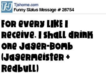 X is For every LIKE I receive. I shall drink one Jager-Bomb (Jagermeister + Redbull)