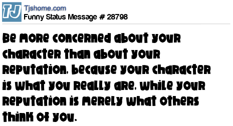 - # 17277 Be more concerned about your character than about your reputation, because your character is what you really are, while your reputation is merely what others think of you.