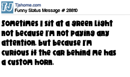X Sometimes I sit at a green light not because I'm not paying any attention, but because I'm curious if the car behind me has a custom horn.