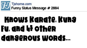 - # 37761 I know karate, kung fu, tae kwon do, jujitsu, and 27 other dangerous words.