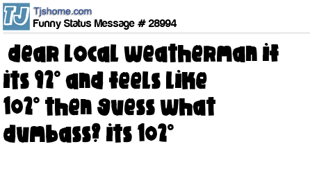 X says  dear local weatherman if its 92° and feels like 102° then guess what dumbass? its 102°