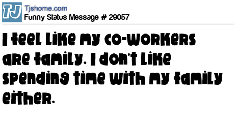 X I feel like my co-workers are family. I don't like spending time with my family either.