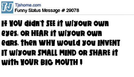 - # 137845 if you didn't hear it with your own ears or see it with you own eyes. Don't invent it with your small mind, and share it with your big mouth.