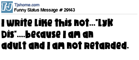 X I write like this not..."LyK Dis"....because I am an adult and I am not retarded.