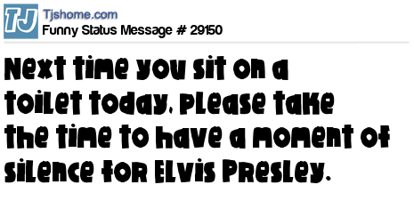 X says Next time you sit on a toilet today, please take the time to have a moment of silence for Elvis Presley.