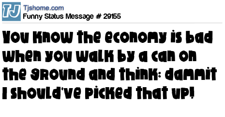 X you know the economy is bad when you walk by a can on the ground and think: dammit I should've picked that up!