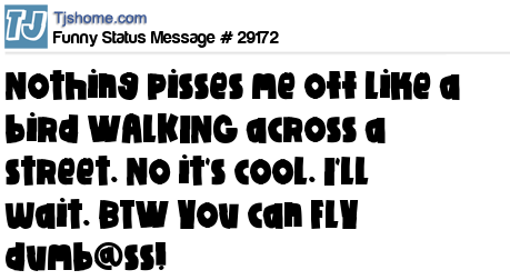 - # 29618 Nothing pisses me off like a bird WALKING across a street. No it's cool. I'll wait. BTW You can FLY dumbass!