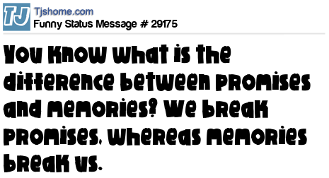 - # 63877 Difference between promises and memories? We break promises, and our memories break us.