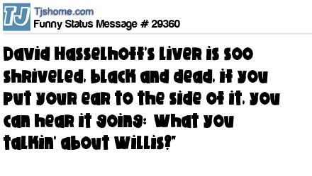 X David Hasselhoff's liver is soo shriveled, black and dead, if you put your ear to the side of it, you can hear it going: ‘What you talkin' about Willis?"