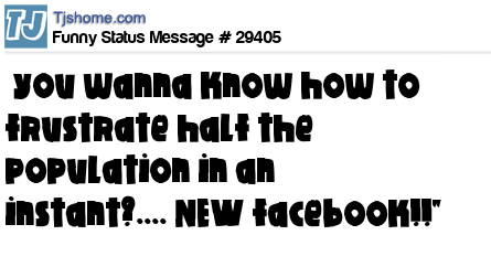 X you wanna know how to frustrate half the population in an instant?.... NEW facebook!!"