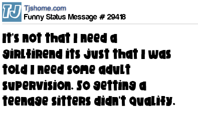 X It's not that I need a girlfirend its just that I was told I need some adult supervision. So getting a teenage sitters didn't qualify.