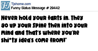 - # 103796 dont try to hold a fart coz it will travel up your spine, to your brain and thats where sh!++y ideas come from