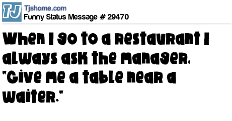 - # 51286 When I go to a restaurant I always ask the manager, “Give me a table near a waiter.”
