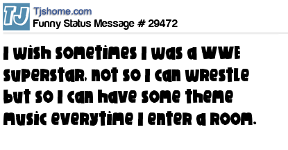 X I wish sometimes I was a WWE superstar, not so I can wrestle but so I can have some theme music everytime I enter a room.