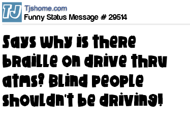 - # 147369 why does the drive-thru ATM have braille?....what blind person is driving a car?