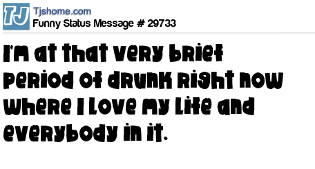 X I'm at that very brief period of drunk right now where I love my life and everybody in it.