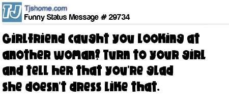 X Girlfriend caught you looking at another woman? Turn to your girl and tell her that you're glad she doesn't dress like that.
