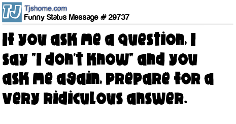 X  If you ask me a question, I say "I don't know" and you ask me again, prepare for a very ridiculous answer.