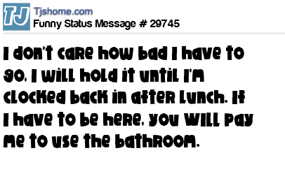 X I don't care how bad I have to go, I will hold it until I'm clocked back in after lunch. If I have to be here, you WILL pay me to use the bathroom.